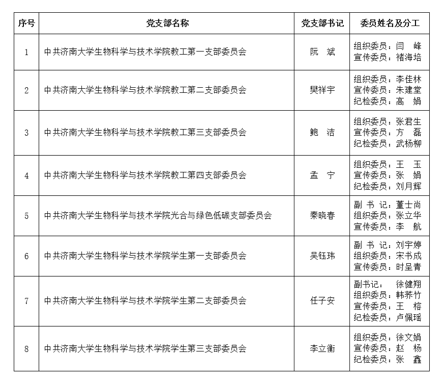 太阳成集团tyc33455党支部设置及委员会组成人员