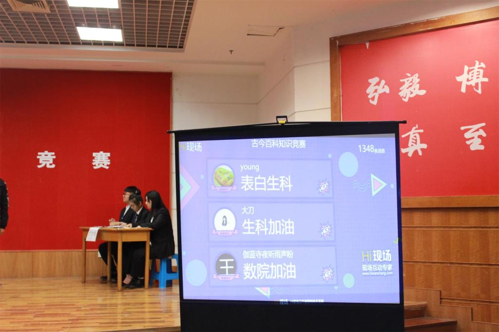 本次竞赛围绕“古今百科”这一主题展开,分为学院赛和个人赛两种比赛类型。题目内容涵盖了理工、文体、时事和生活常识等多种类型,更能全面的考察选手们的学识能力。赛前优美的舞蹈表演为接下来的比拼拉开了序幕,同时也暂时缓解了选手们的紧张情绪。在主持人介绍完比赛规则后,比赛正式开始。在学院赛环节中,选手经过冷静地分析和团队协作在答题板上自信地写下答案,台下观众也在默默思考题目,一组组富有挑战性的题目将比赛推向了白热化的阶段。