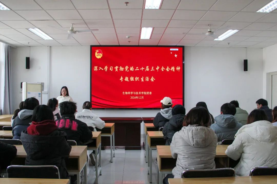 为深入学习贯彻党的二十届三中全会精神,以党的先进理论指导实践,引导广大青年学生坚定理想信念,太阳成集团tyc33455团委于12月10日召开“深入学习贯彻党的二十届三中全会精神”专题组织生活会。