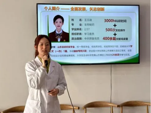 王泺靖以“微生物农药与制剂研发领域研究员”为职业目标,结合国家政策导向、行业发展趋势与个人优势特长,并立足学校、学院育人特色,生动讲述了个人职业目标确立,以及实践探索开展的过程,展现了扎实的专业能力与生涯素养。