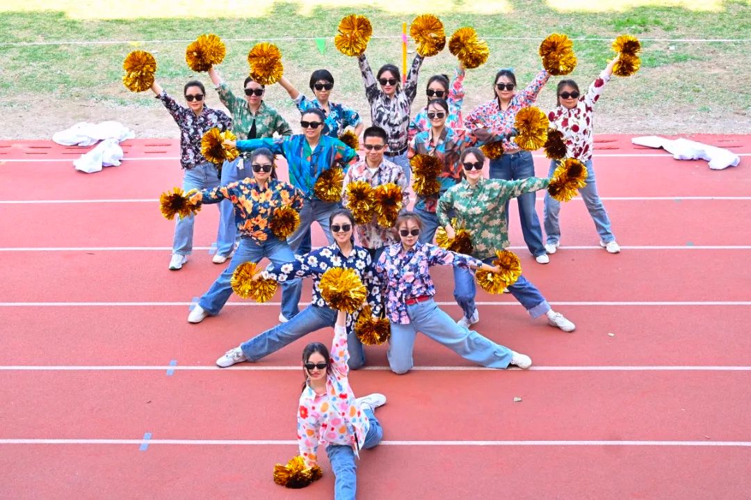 我院参赛项目包括生物2301班贾梓硕带来的单人项目《竞技健美操规定套路》、生物2301班吴腾带来的单人项目《自编竞技健美操》,学生团体自选动作《全国街舞啦啦操二级》、学生团体规定动作《上春山》花球啦啦操以及教职工参赛队员带来的《上春山》自编曲目。随着激昂欢快的旋律,参赛队员动作协调、节奏同步,于起伏律动之中洋溢活力,有力彰显出参赛师生热情饱满、阳光自信的昂扬姿态。最终经过激烈地角逐,学院参赛队伍斩获多项奖项。精彩表现的背后是参赛师生日复一日的刻苦训练,他们反复打磨每一个动作,耐心纠正每一处失误,努力展现最完美的表演。