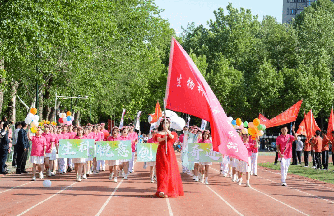 运动盛会的战鼓已经敲响,让我们相约赛场,并肩前行。这片挥洒汗水的赛场是专属于你们的闪耀舞台,尽情绽放光芒吧,生科健儿们!