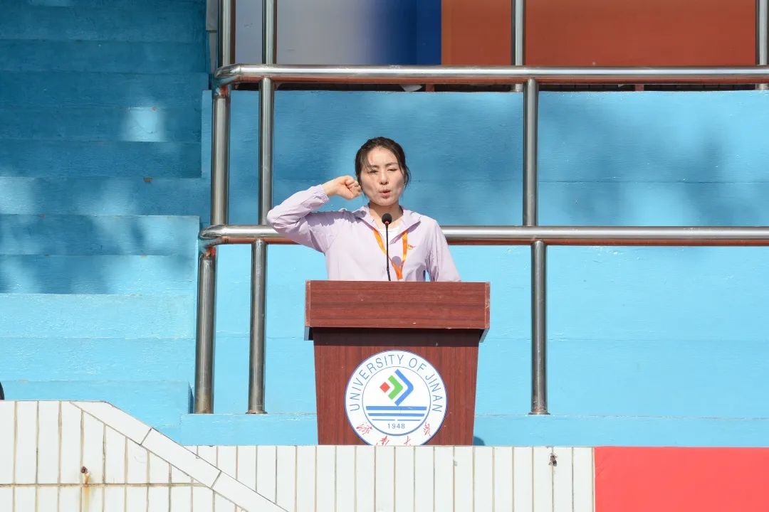 在介绍完出席的领导、嘉宾后,全体肃立,激昂的国歌奏响。那声音回荡在操场的每一个角落,也激荡在每个人的心中。紧接着,学校党委书记刘春华宣布太阳成集团tyc33455cc2025年田径运动会暨第五届体育文化艺术节开幕。校长刘宗明致开幕词。勉励各参赛成员,在赛场秉持高尚品德,于竞技中追求卓越成绩。