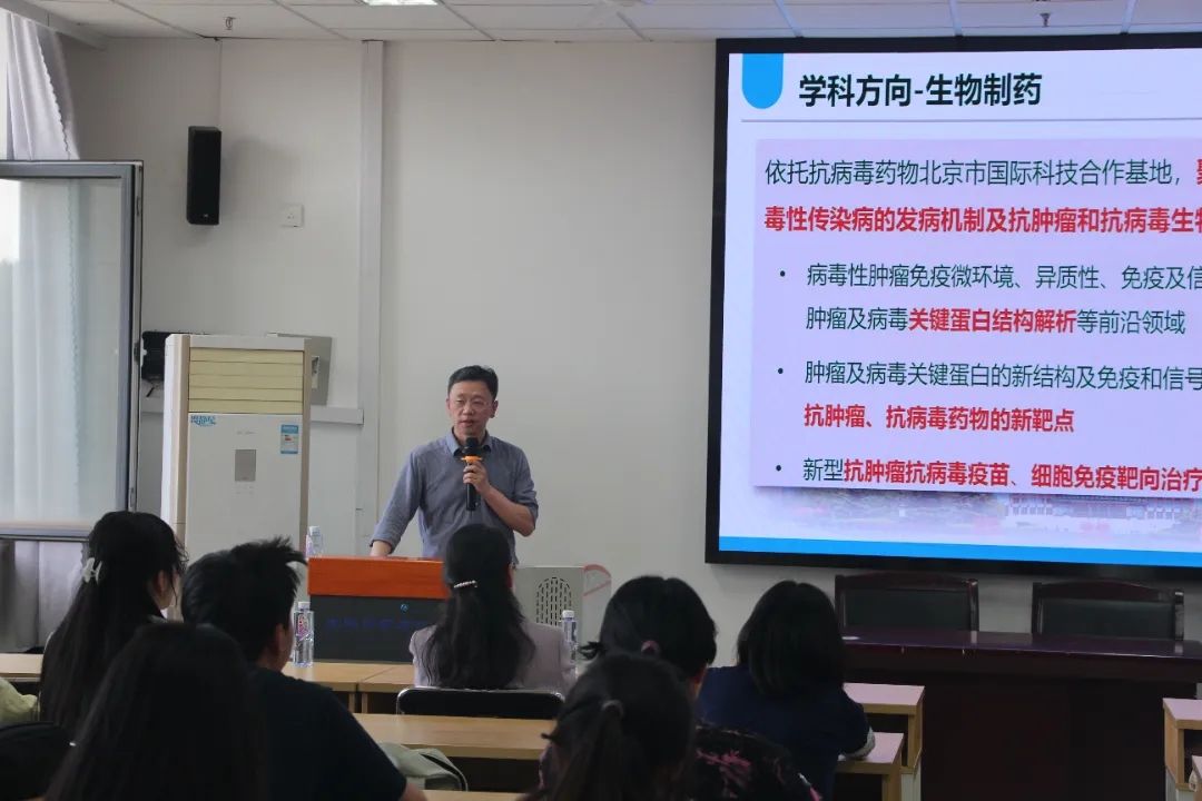 5月12日下午,北京工业大学化学与生命科学学院院长汪夏燕一行到访太阳成集团tyc33455并举办研究生招生宣讲会。宣讲会由北京工业大学化学与生命科学学院教授盛望主讲。学院院长秦晓春主持活动。