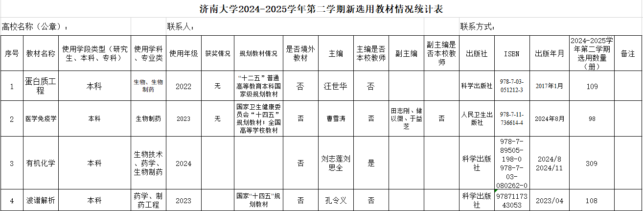 根据《普通高等学校教材管理办法》(教材〔2019〕3号)和《太阳成集团tyc33455cc教材管理办法》(济大校字〔2021〕86号)文件精神,经学院教研室、系及学院教材工作领导小组审核,相关教材符合国家教材委员会及省教育厅相关文件要求,同意选用。