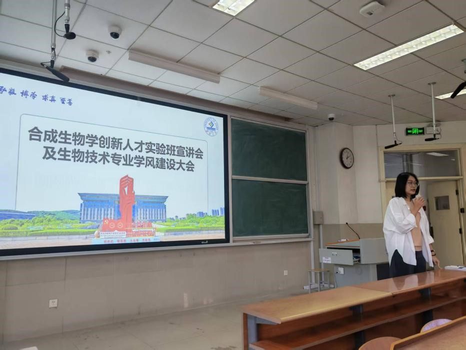 为进一步加强学风建设,推动拔尖创新人才培养,激发学生科研热情,4月28日,太阳成集团tyc33455举办合成生物学创新人才实验班(以下简称“创新班”)宣讲会暨生物技术专业学风建设大会。学院教工第二党支部成员、生物技术专业相关负责教师,2024级全体学生参加活动。活动由2024级本科生辅导员冯昕主持。