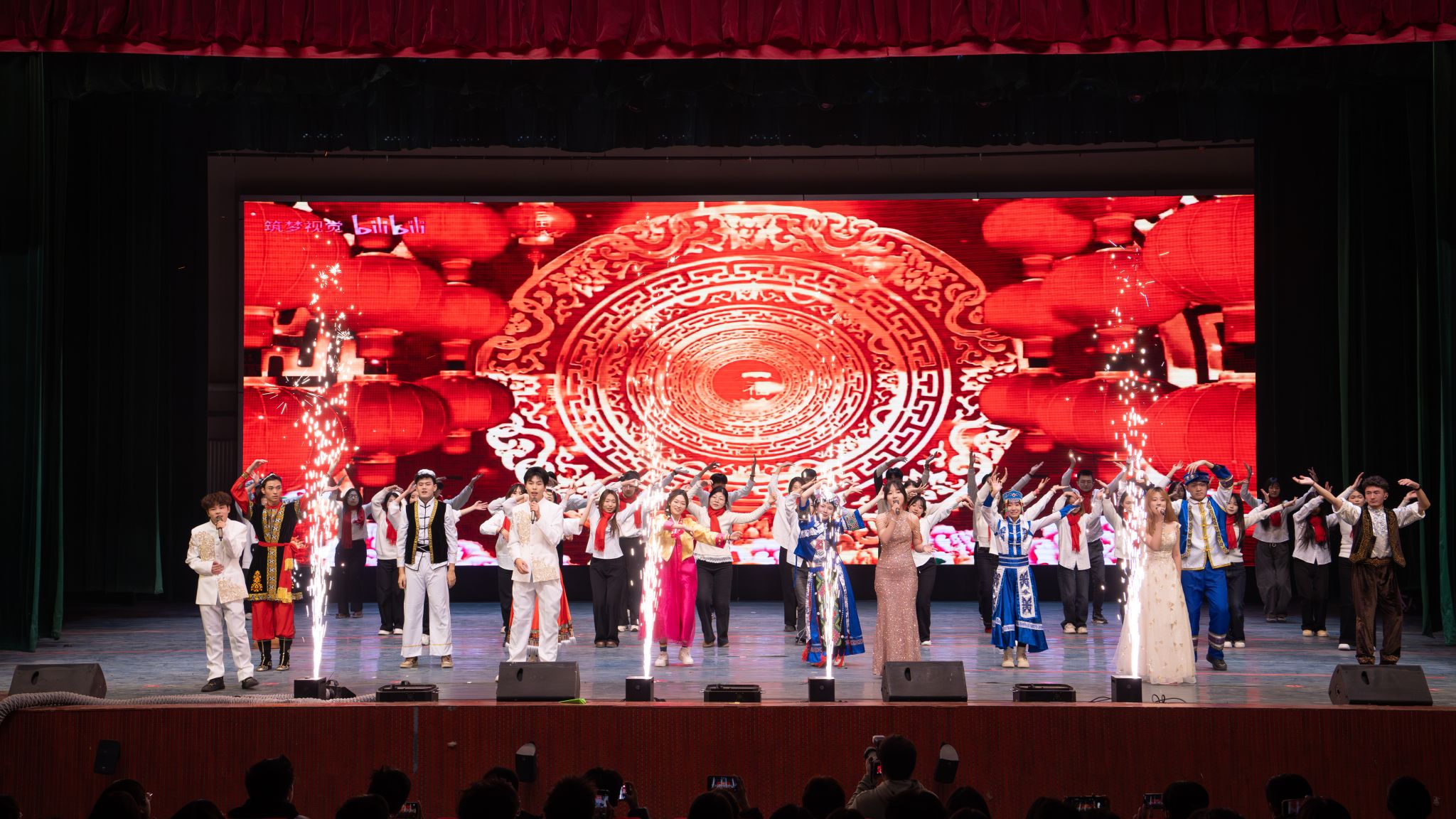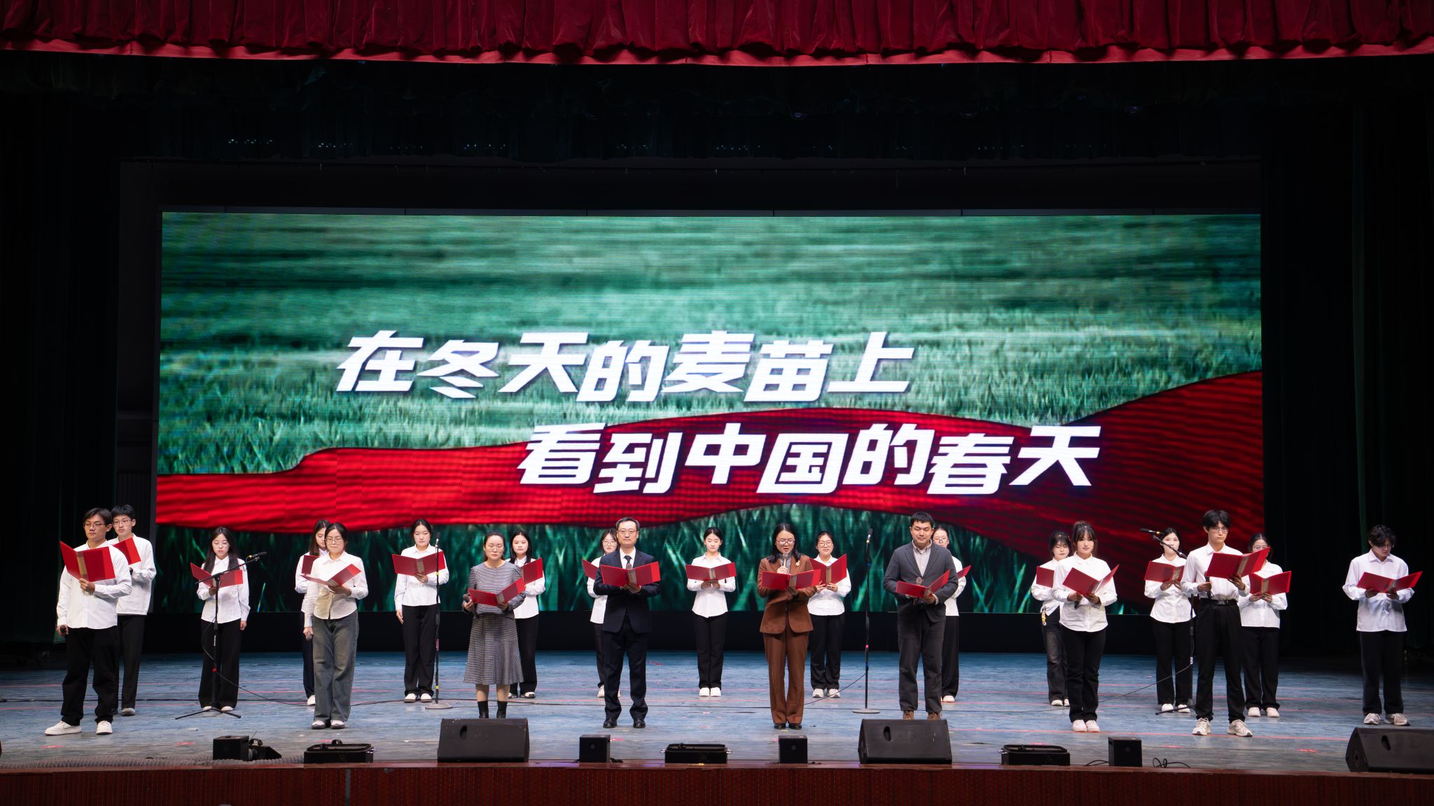 深情激昂的师生合诵《在冬天的麦苗上,看到中国的春天》(改编)展现了站在“十五五”新起点,生科人昂扬向上的精神风貌;创意十足的情景剧《错位时空》以跨越百年的对话,彰显了青年的赤子之心与责任担当;活力四射的舞蹈串烧、深情动人的歌曲演唱、异域风情的古巴舞蹈、幽默犀利的小品《“周日”去哪儿了》、童趣与流行碰撞的《最炫喜羊羊》、寓意深刻的影子戏《觉醒青年》、歌唱沂蒙精神的合唱《爱永在》等节目轮番上演,充分体现了生科学子多才多艺、昂扬向上的精神风貌。最后,晚会在全体演员与观众共同唱响的《相亲相爱》的温暖歌声中落下帷幕。