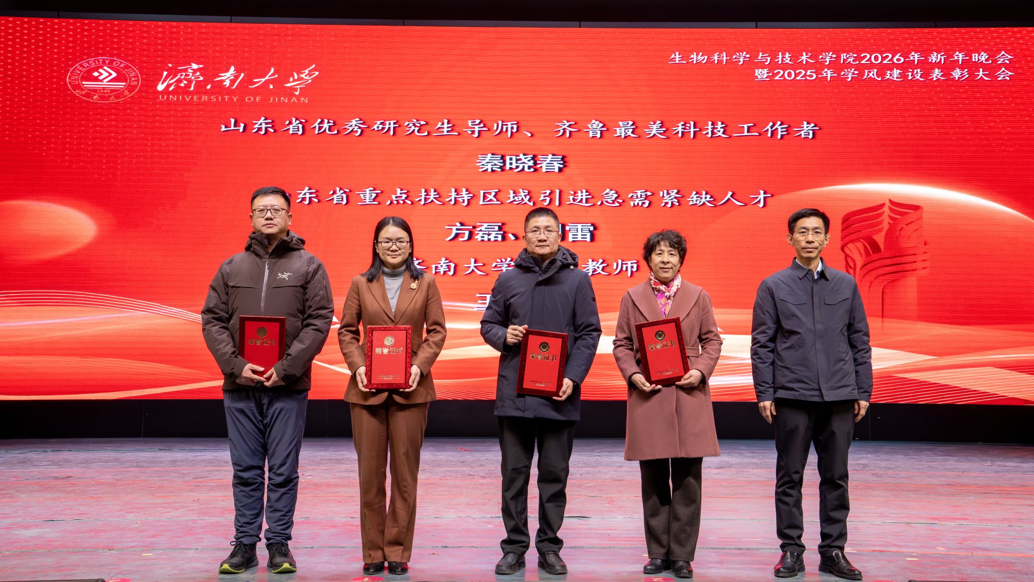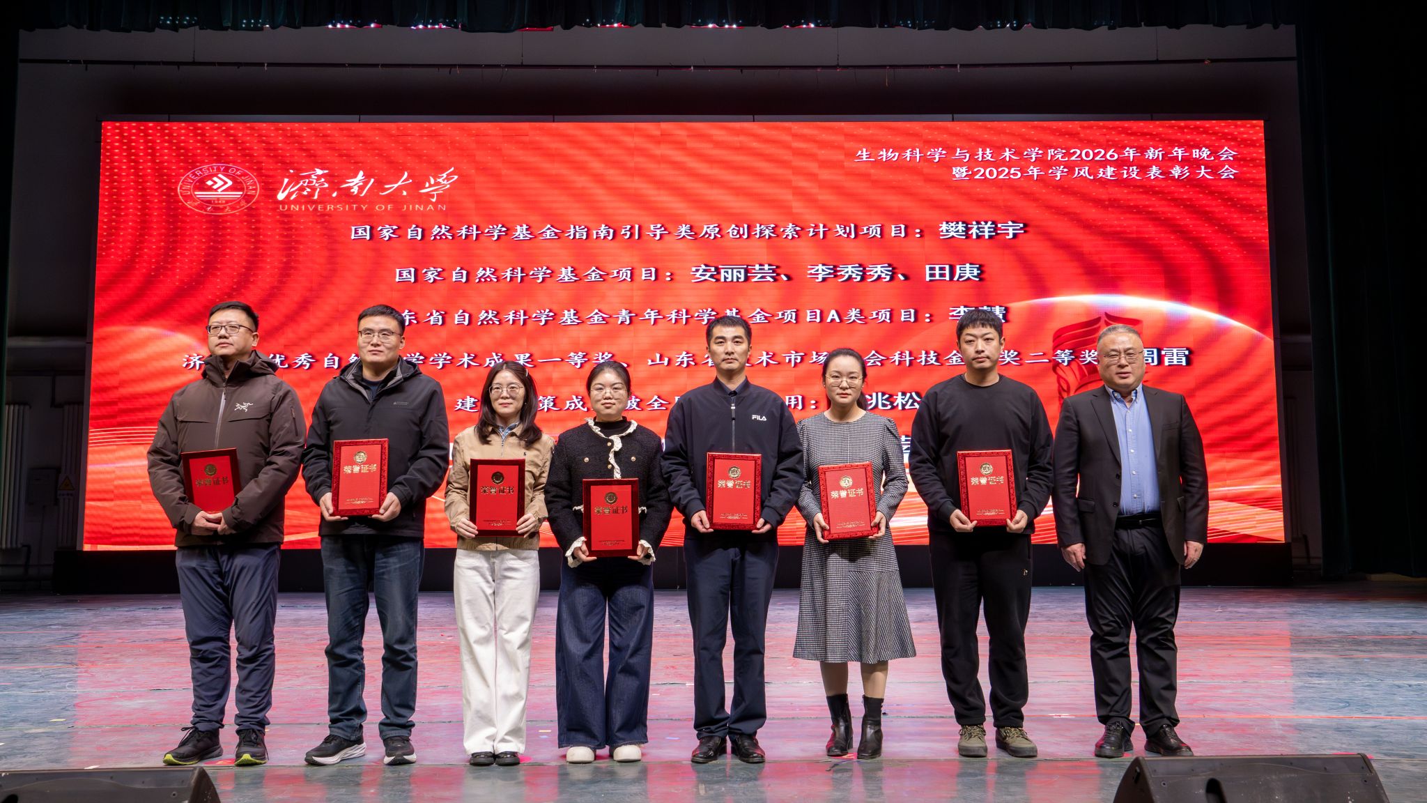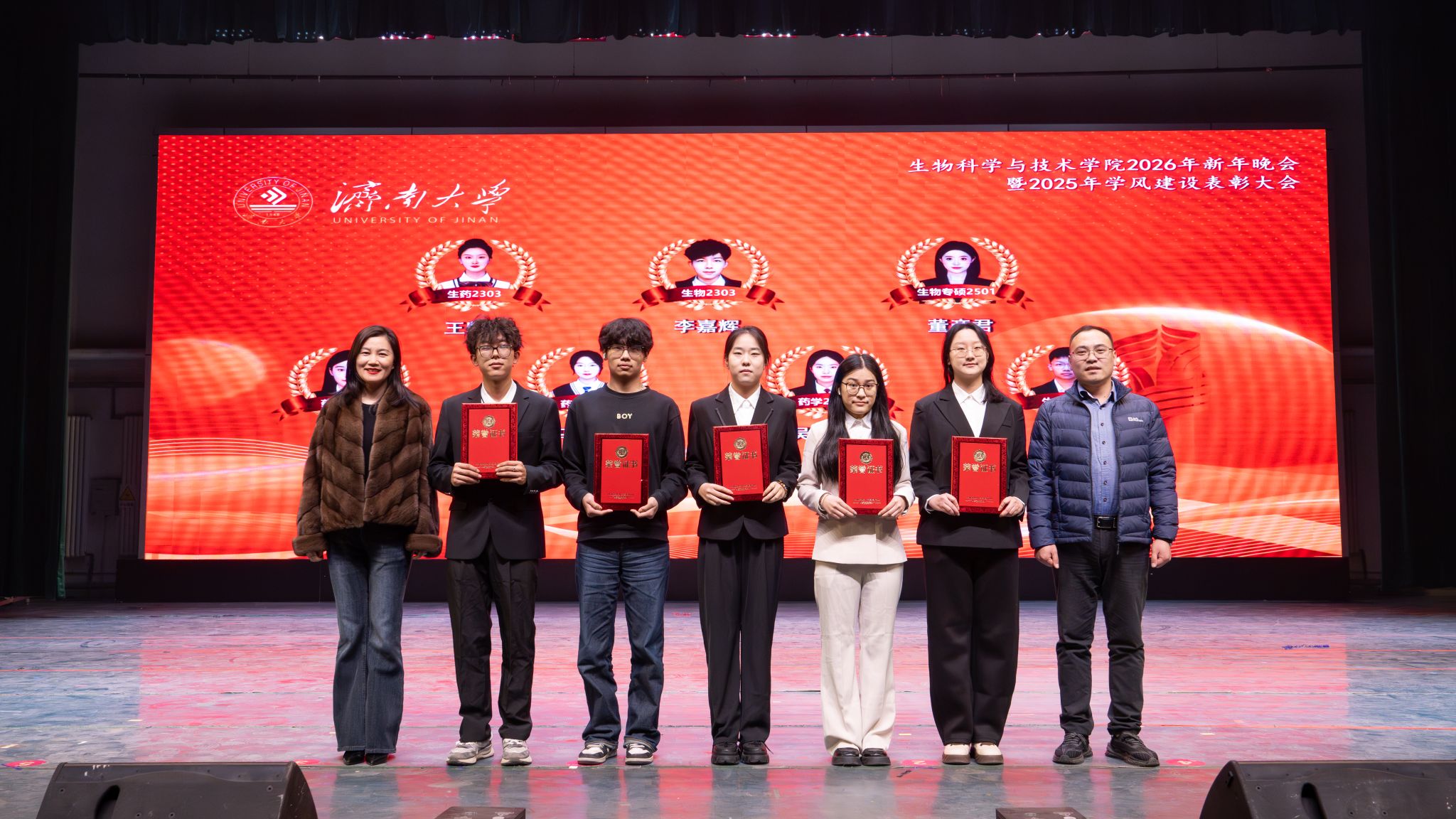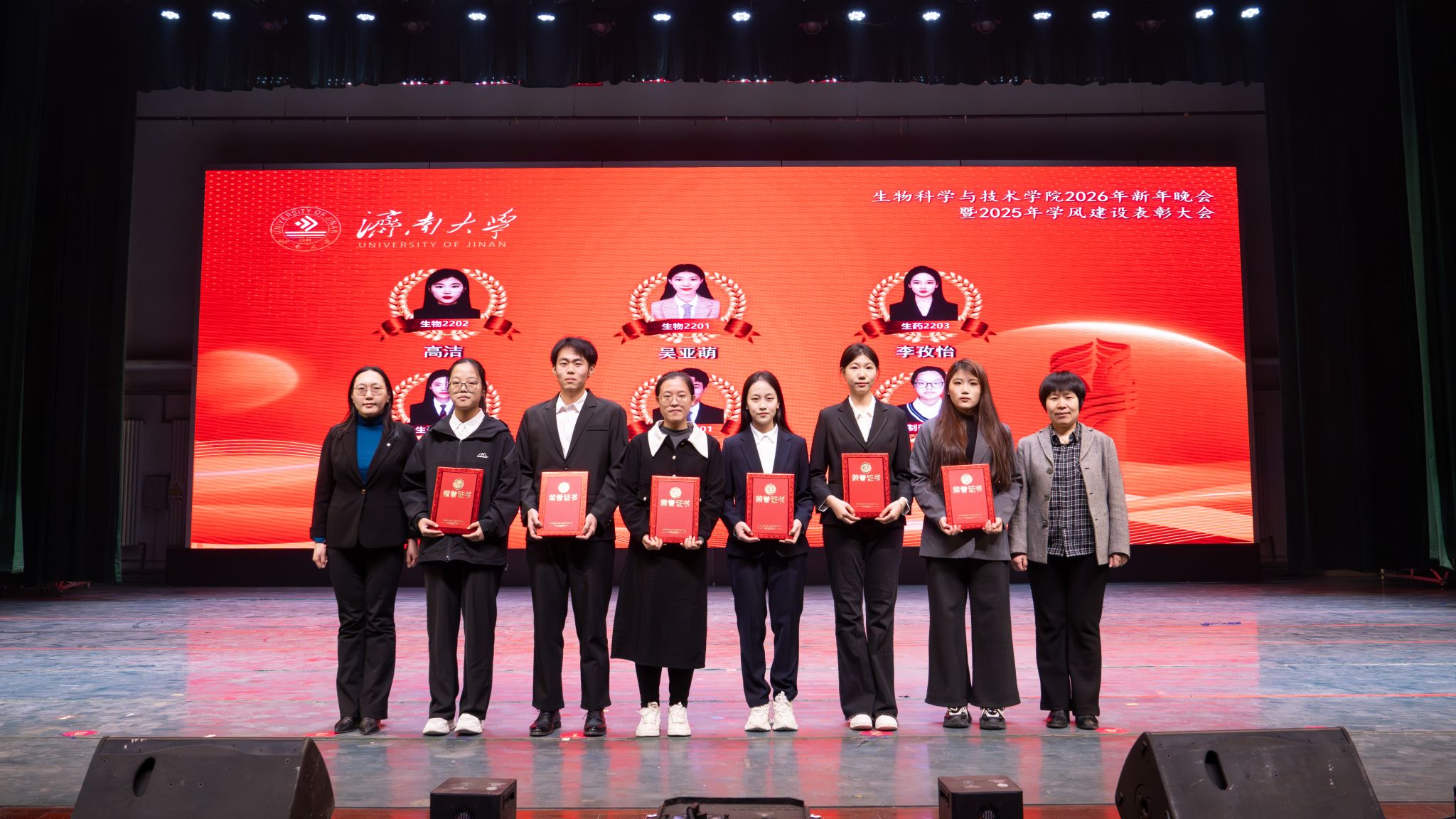 弦歌不辍,薪火相传。本次新年晚会暨学风建设表彰大会既是一场精彩纷呈的视听盛宴,更是一次涤荡心灵的精神洗礼、凝心聚力的生动实践,生动展现了太阳成集团tyc33455深耕立德树人、坚持开拓创新的丰硕成果,更彰显出全院师生团结奋进、追求卓越的精神风貌。站在2026年的崭新起点,全体生科人必将以更加饱满的热情、更加昂扬的斗志、更加务实的作风,策马扬鞭、勇毅前行,共同擘画学院发展的宏伟蓝图,为学校高质量发展凝聚共识、汇聚合力,为强国建设、民族复兴贡献生科智慧与力量。