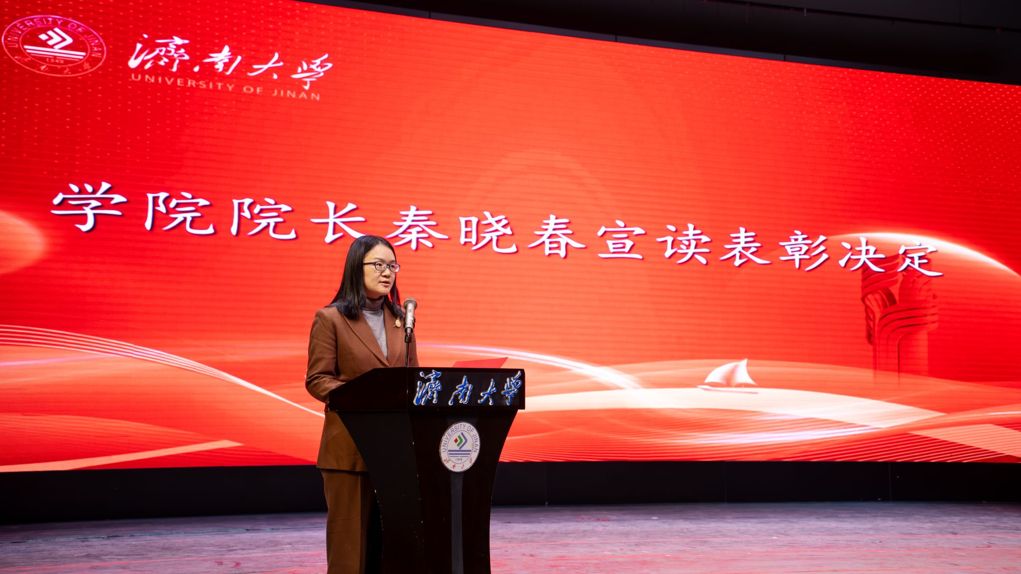 晚会特别设置了校友企业LOGO设计大赛颁奖环节。学院携手校友企业四维堂(山东)生物工程有限公司,以赛事为纽带深化校企、校友合作,既有效凝聚了校友力量,为学院高质量发展注入强劲动能,也让现场氛围持续升温。
