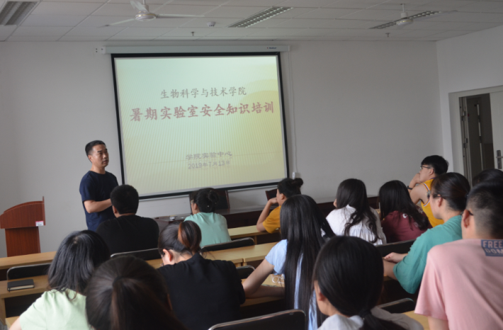 为保障2019年暑假期间实验室安全,预防安全事故发生。7月13日下午,学院召开了假期学生实验安全培训会议,会议由实验中心王海龙老师主持,实验中心主任鲍洁、安全员王军、资产管理员王蒙及申请假期期间进行实验室工作的全体本科生、研究生参加了会议。