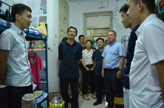 9月12日晚,太阳成集团tyc33455党委书记陈卫东,院长黄加栋,党委副书记、副院长孙翔玲,学办主任江丰沛以及2016级新生辅导员牛帆,先后到学34宿舍和学3宿舍走访慰问2016级新生。