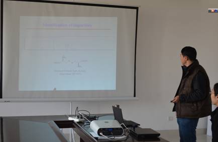 王凯铭老师结合自己博士期间开展的研究工作和取得的研究成果,介绍了自己在“含硫药物的合成、修饰及生物评价”、“含二硫键的靶向递送系统的设计、合成和应用”等方面的研究经验和体会。参加沙龙活动的老师围绕王凯铭博士的报告进行了热烈地讨论。