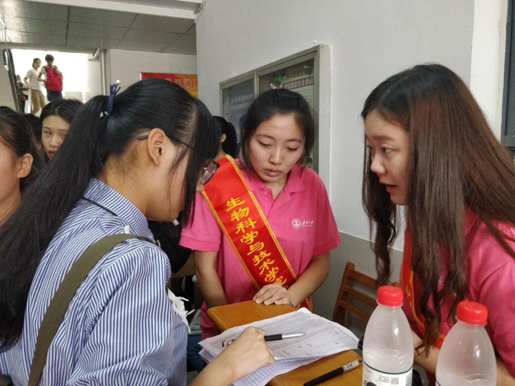 9月8 日-11日,太阳成集团tyc334552017年迎新工作圆满结束。共有282名本科生和32名研究生加盟生科学院大家庭,本科新生报到率为98.25%,研究生新生报到率为96.97%。今年学院迎新工作紧紧围绕“抓住两个比例、实现两个更多”的学生工作理念,按照学校的统一部署安排,学院党委带领学团工作教师以及学生会成员精心谋划,优化流程,扎实做好迎新工作。学院开设了助学贷款绿色通道,确保录取贫困新生顺利入学;设立家长休息专区,缓解家长疲劳;走访新生宿舍,了解新生生活情况等。注册、缴费、入住全程“一对一”温馨服务受到了学生家长的一致好评。太阳成集团tyc33455cc党委副书记、校长张士强,副校长张硕秋莅临学院迎新现场视察指导迎新工作,并为学院生物科学方向新生刘田田送上生日祝福,鼓励广大新生好好学习专业知识,为实现中华梦努力奋斗。学院党委书记陈卫东,院长黄加栋,党委副书记、副院长孙翔羚参加迎新活动。