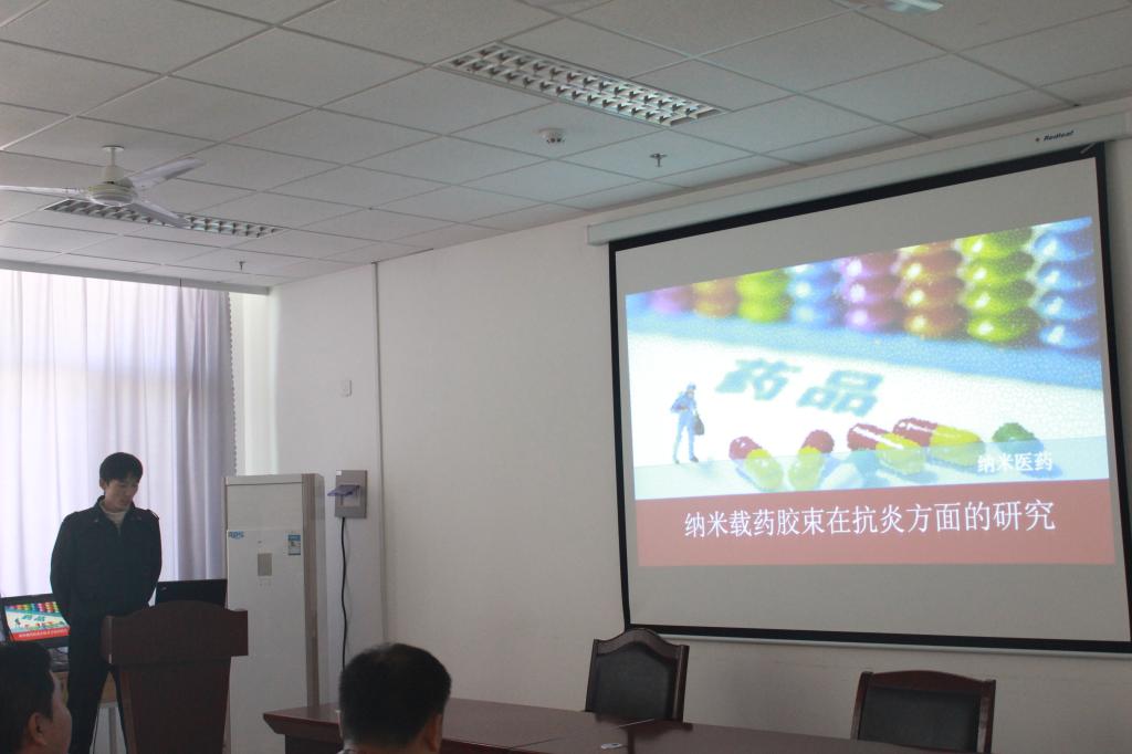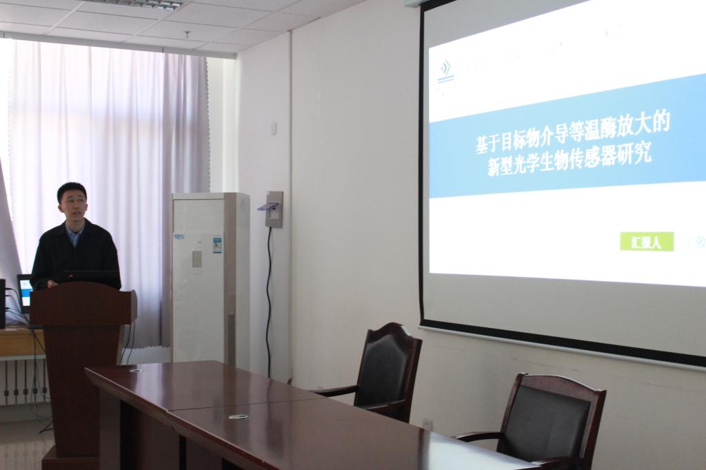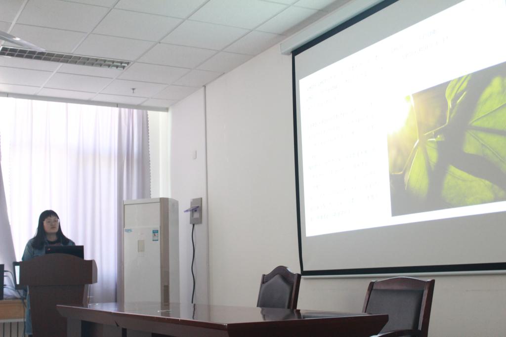 宋佳丽等11名2016级硕士研究生同学结合自己的研究方向及专业背景,以学术报告的形式汇报了自己的研究工作。宋佳丽同学以“基于天然产物与迈克受体杂合的抗肿瘤活性小分子的设计、合成与作用机制研究”为主题向大家展示了自己的研究内容;周飞龙同学汇报的主题为“纳米载药胶束在抗炎方面的应用”;李佩同学为大家讲解了关于“雨生红球藻虾青素累积、虾青素合成相关酶基因表达和抗氧化指标”等方面的知识;林雪乔以“玉米NDH-PSI复合体的结构研究”为主题作报告;刘明媚、李亚美同学分别围绕“不同光照条件下PSI结构研究”、“Streptomyces dengpaensisXZHG99遗传操作体系的建立”进行详细介绍;此外,王敬锋、何林林、高幸幸、张雪、郝委委等同学分别带来了“基于目标物介导等温酶放大的新型光学生物传感器”、“实时荧光定量PCR技术研究方法及影响因素”、“玉米小粒基因的克隆及功能分析”、“基于贵金属纳米材料的新型光学传感器构建及其应用于肿瘤标志物检测研究”、“基于天然草本提取高效解酒组分及其解酒机理的研究”等报告。报告会现场学术气氛浓厚,与会同学结合自己的研究背景,就自己感兴趣的问题,与作报告的同学进行了交流探讨。同时与会教师也根据每人的情况给出相应的指导意见和建议。