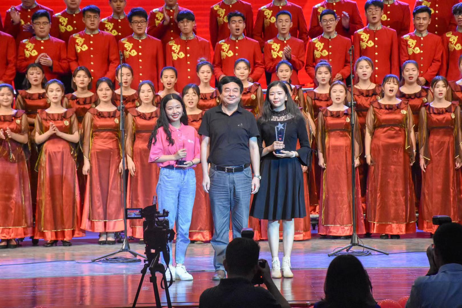 为热烈庆祝中华人民共和国成立70周年,大力弘扬以爱国主义为核心的伟大民族精神,激发广大青年学生爱国之情、强化爱国之志,加强青年学生爱校荣校教育,展现2019级学子青春蓬勃的精神风貌,9月27日晚,学校以“砥砺奋进七十载,青春建功新时代”为主题的庆祝中华人民共和国成立70周年暨第六届新生合唱节汇报展演在大礼堂正式拉开帷幕。我院2019级合唱团参加新生合唱节第一场并以全场最高分获得了一等奖的佳绩。