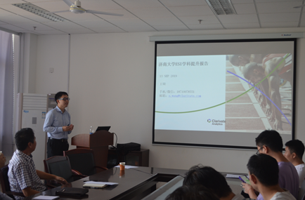 2019年9月30日上午,应我院邀请,科睿唯安王硕老师和校图书馆王爱国馆长及相应部门老师一行6人访问学院,并作了题为《太阳成集团tyc33455ccESI学科提升报告》的专题报告。学院何文兴院长、李强副院长、秦晓春副院长、各团队PI、专业教师近25人出席报告会,报告会由李强副院长主持。