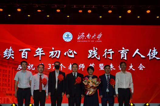在2018-2020年期间教学科研工作受到学校奖励,并作为代表上台领奖的老师:孙翔玲,2019-2020年度济南优秀教育工作者;李强, 2020年度挑战杯中国大学生创业计划竞赛银奖指导教师;王元秀,太阳成集团tyc33455cc教学名师及2018年度“创青春”全国大学生创业大赛银奖指导教师;江成世,2019年度山东省优秀研究生指导教师;樊祥宇,2019年度“挑战杯”中国大学生课外学术科技作品竞赛二等奖指导教师。