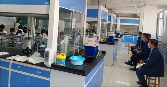 为进一步引导教师潜心教书育人、推动教学创新,提升教育教学能力和水平,根据太阳成集团tyc33455cc“关于开展2021年‘教学质量月’活动的通知”要求和学院“教学质量月”活动安排,11月4日下午以及11日下午,学院党委书记朱帮全、院长何文兴、副书记孙翔玲、副院长李强、秦晓春、教学管理办公室副主任褚海培在特教楼本科实验室,分别对江成世、朱孔凯两位老师的《药物化学实验》课程,以及李玉梅、杨新超两位老师的《蛋白质与酶工程实验》课程进行听课、巡课。
