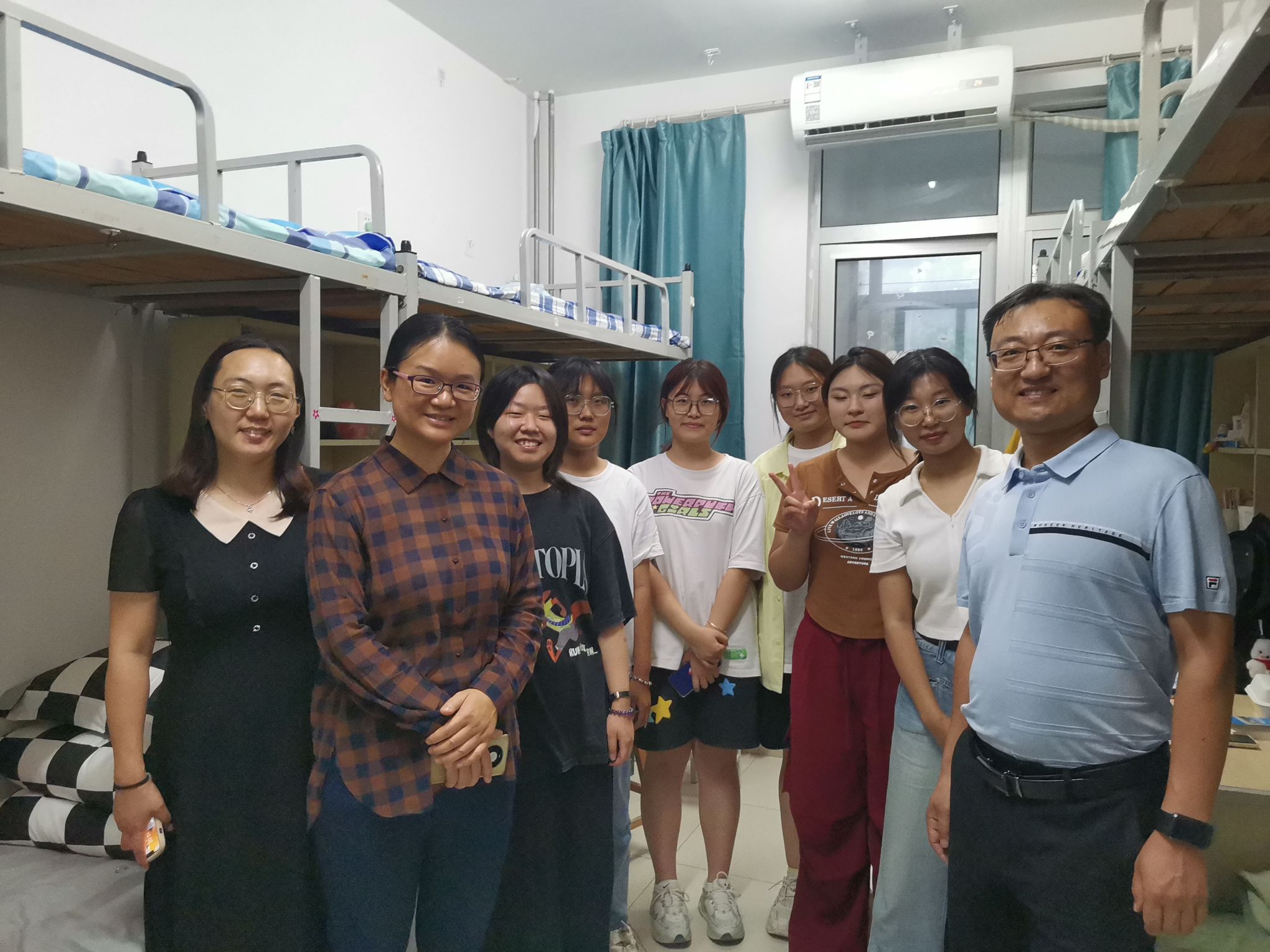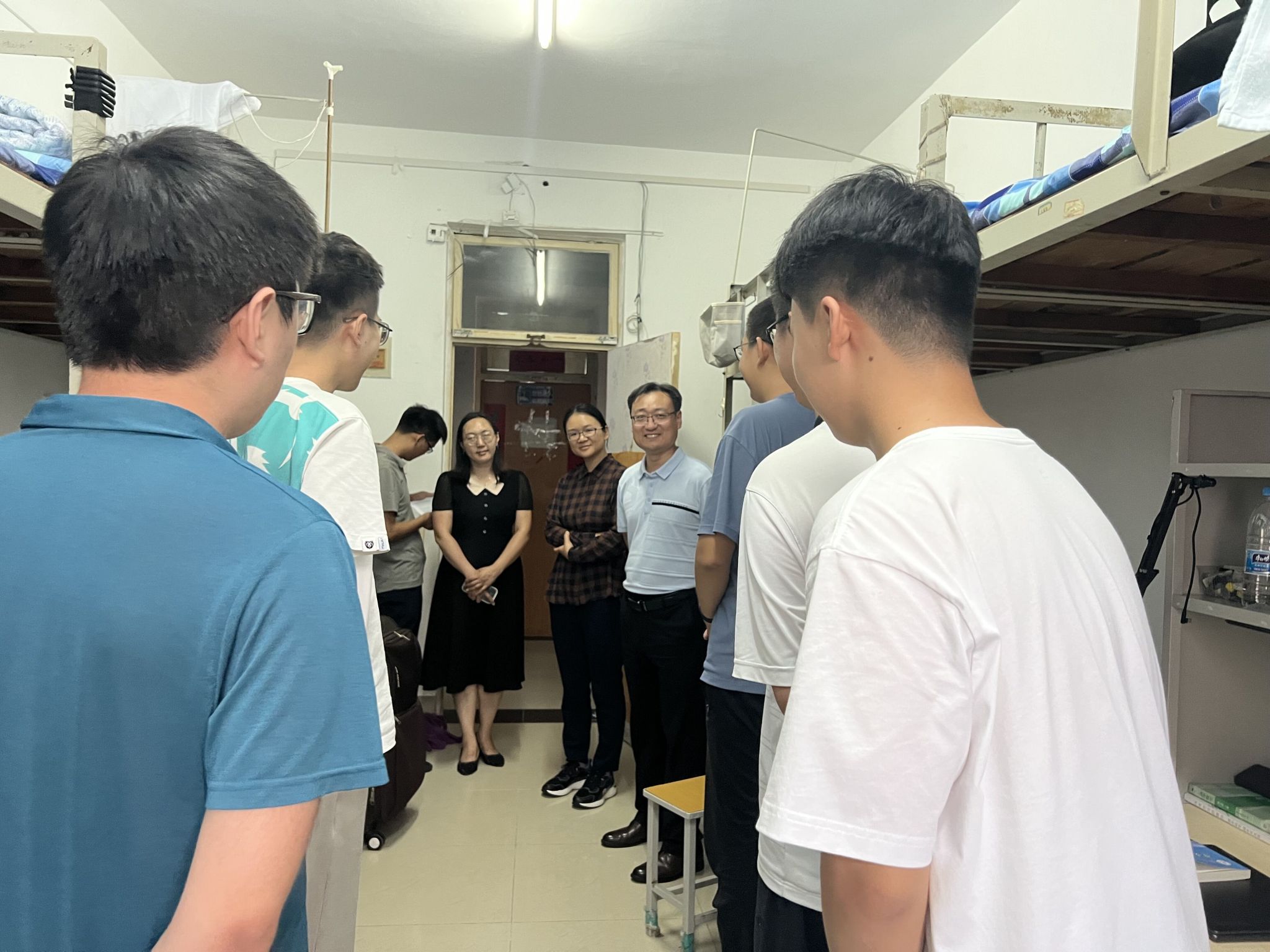 9月6日,太阳成集团tyc33455迎来了400余名2023级新同学。为深入了解新生情况,帮助学生尽快适应新环境,当天下午,学院党委书记史国普,院长秦晓春,党委副书记、副院长武芳,学办主任阮斌,辅导员李立衡逐一走访宿舍,为学生送去亲切的问候与热切的关爱。