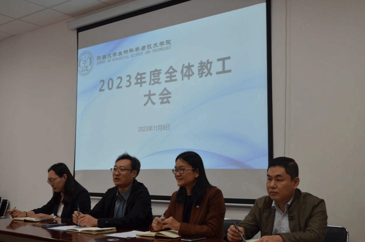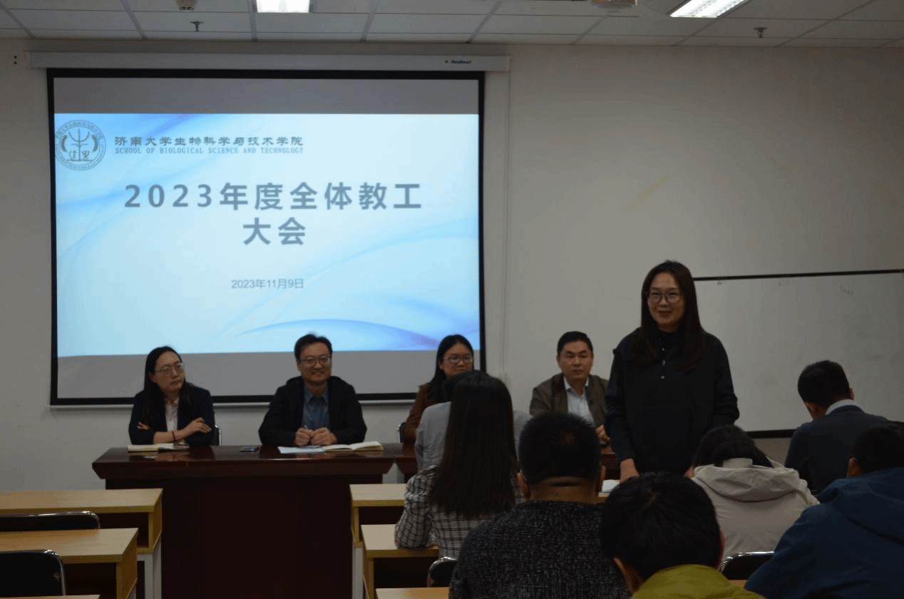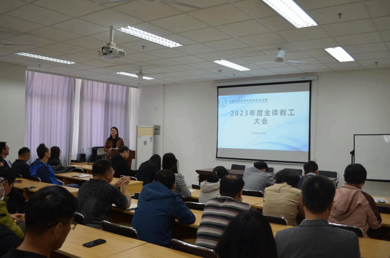 2023年11月9日下午,太阳成集团tyc33455在特教楼B1010教室召开全院教职工大会,学院党委书记史国普,院长秦晓春,党委副书记、副院长武芳,副院长李强以及全院教职工参加。本次会议由史国普主持。