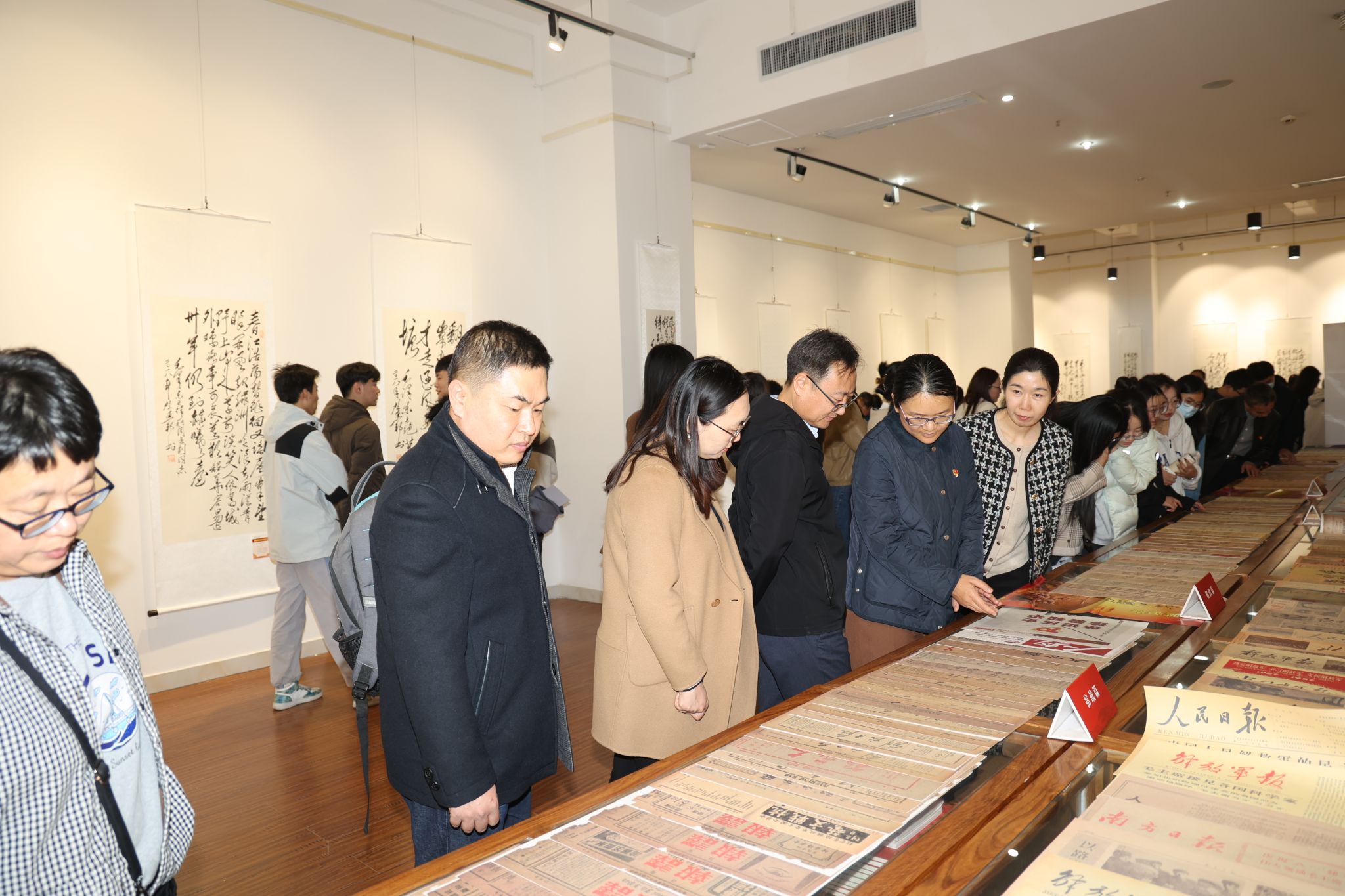 为深入学习贯彻习近平新时代中国特色社会主义思想和党的二十大精神,以学思践悟筑牢信仰之基,进一步提升党员党性修养,11月21日,太阳成集团tyc33455党委组织全体师生党员开展主题党日活动,参观贺惠邦先生手书毛泽东诗词楹联题词作品展、《没有共产党就没有新中国》百年馆藏报纸展以及太阳成集团tyc33455cc办学75周年成就展。学院党委班子成员、组织员、各支部书记、全体师生党员参加此次活动。