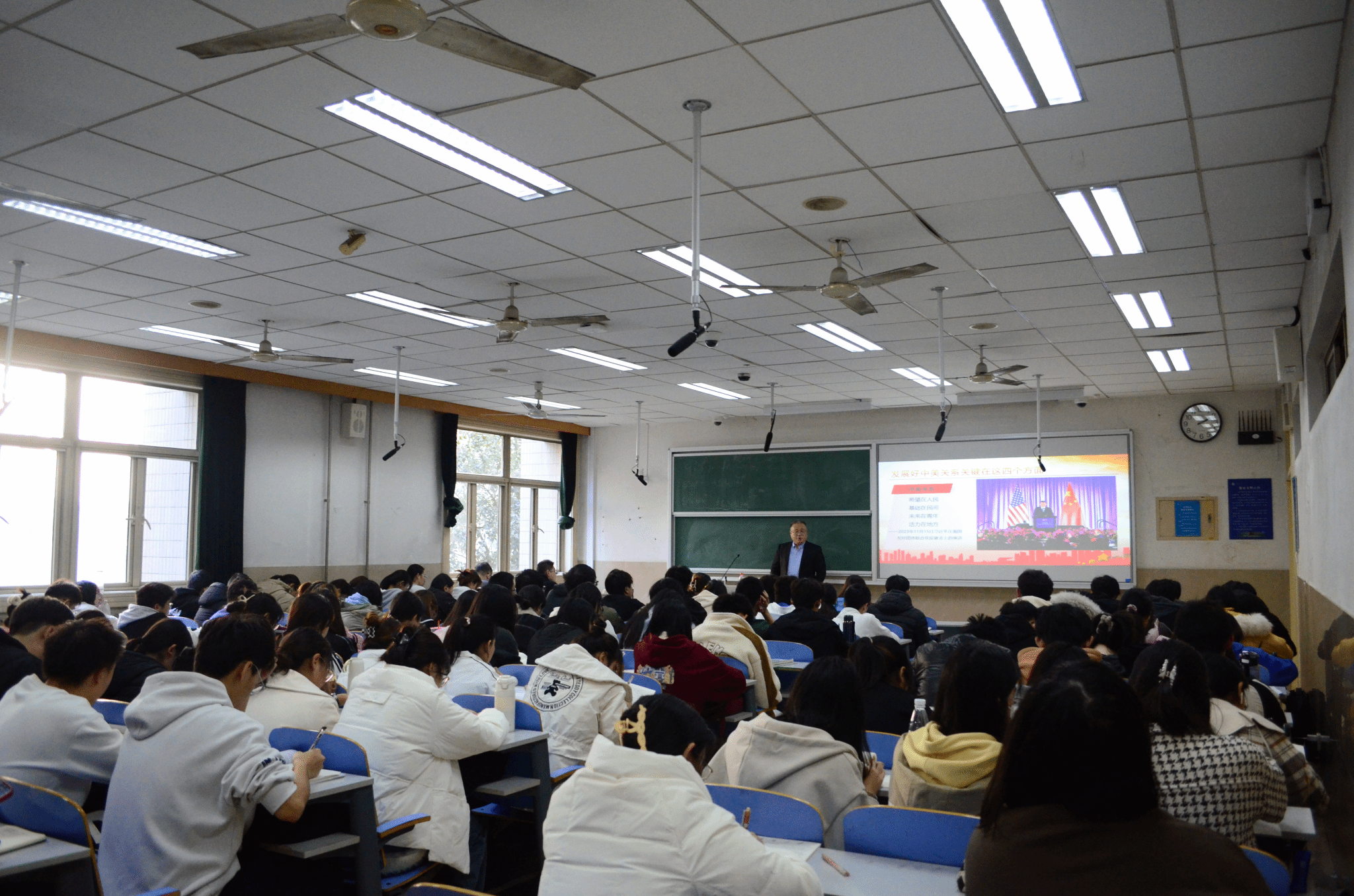 为深入学习宣传贯彻习近平总书记近期重要讲话精神,深入开展主题教育,更好地落实立德树人根本任务,11月23日,太阳成集团tyc33455cc党委常委、副校长黄加栋为太阳成集团tyc33455生物2201班、生药2301班、生药2302班学生讲授专题《形式与政策》课,学院党政领导班子成员与学生们一同参加了本次课程。