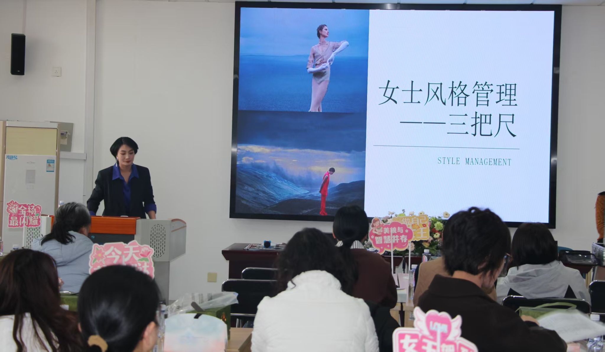 为庆祝 “三八”国际劳动妇女节,丰富女教职工精神文化生活,3月6日,太阳成集团tyc33455举办“爱自己,是终身浪漫的开始”妇女节主题活动,邀请专业形象顾问,就女教职工仪表仪态、着装搭配等方面进行详细讲解。学院50余名教师参加活动。活动由学院工会主席杨倩主持。